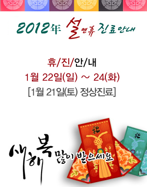 À̹ø 2012³âµµ ¼³ ¿¬ÈÞ(1¿ù 21ÀÏ ~ 1¿ù 24ÀÏ) ±â°£ÁßÀÇ Áø·á ÀÏÁ¤¿¡ ´ëÇØ¼
